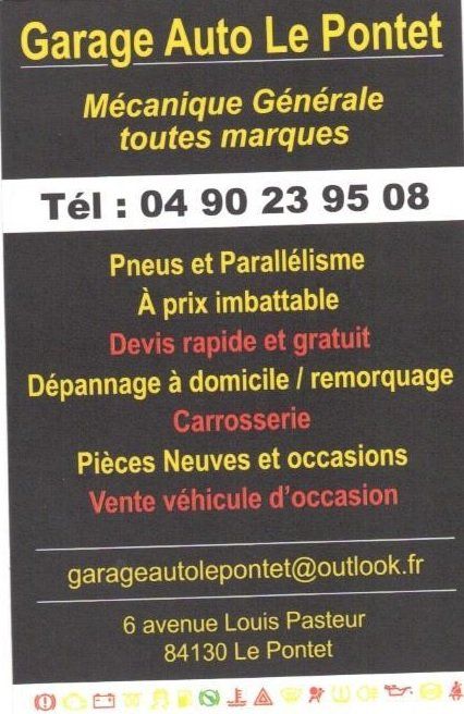 Votre voiture est en panne ? Vous avez eu un accident de voiture ? Contactez le garage auto Le Pontet, près d'Avignon pour une réparation mécanique de votre véhicule toute marque. Le garage est ouvert du lundi au samedi matin. Que vous soyez un particulier ou un professionnel, nos mécaniciens vous accueillent chaleureusement pour diagnostiquer la panne ou la réparation. Tous nos prix sont attractifs.